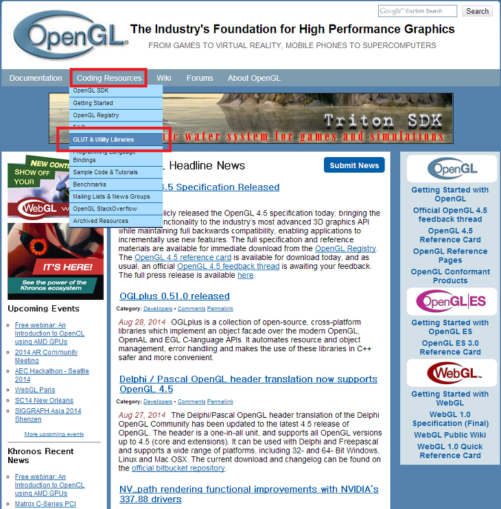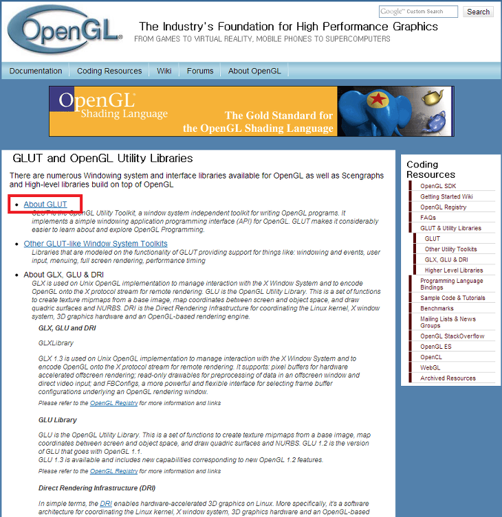 저 같은 경우는 윈도우에서 사용할 거라 "Nate Robin's GLUT for Windows page" 항목을 선택 하겠습니다.