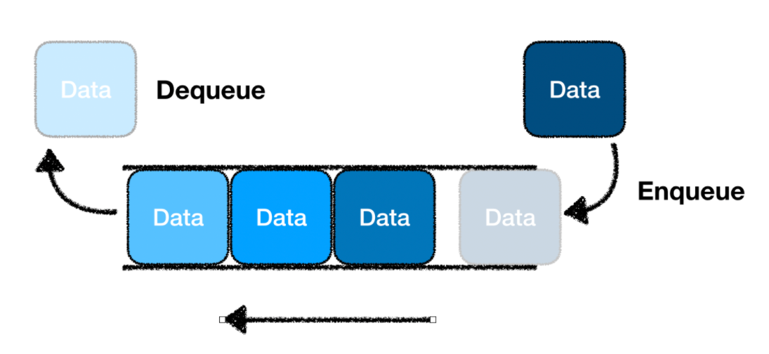 queue에 값을 추가하고 싶다면 push(value)라는 메서드를 활용하면 됩니다. queue에 값을 계속해서 추가해나간다면 아래 그림과 같은 형태로 데이터가 쌓이게 됩니다.
