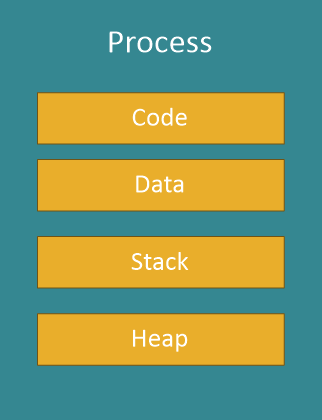 💡 하나의 프로세스는 크게 코드영역(code), 데이터 영역(date), 스택 영역(stack), 힙 영역(heap) 4가지로 이루어져 있습니다.