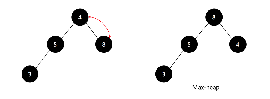 그 과정에서 자식 노드로부터 부모 노드를 비교한다.