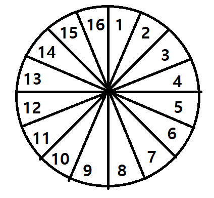 만약에 아래와 같은 회전판에서 초기 값이 상단에 있는 1일때, 회전판을 시계방향으로 25칸 이동시키면 회전판의 상단 값은 어떻게 될까?