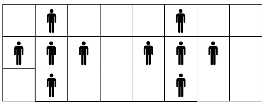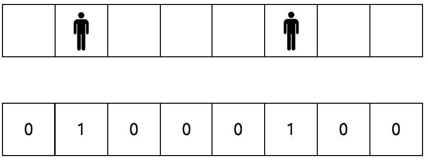 지난 시간과 같이 사람을 1, 빈 자리를 0으로 표현하면 아래와 같이 표현할 수 있다.