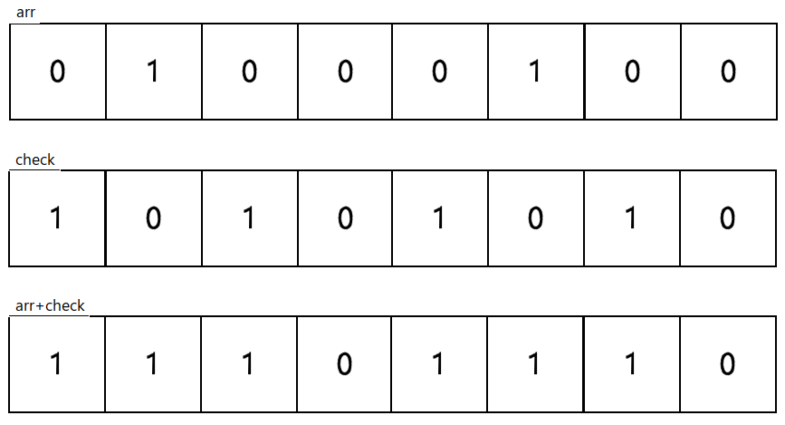 arr배열과 check배열의 각 index들을 더해주면서 우리가 처음 생각했던 결과값을 얻을 수 있었다.