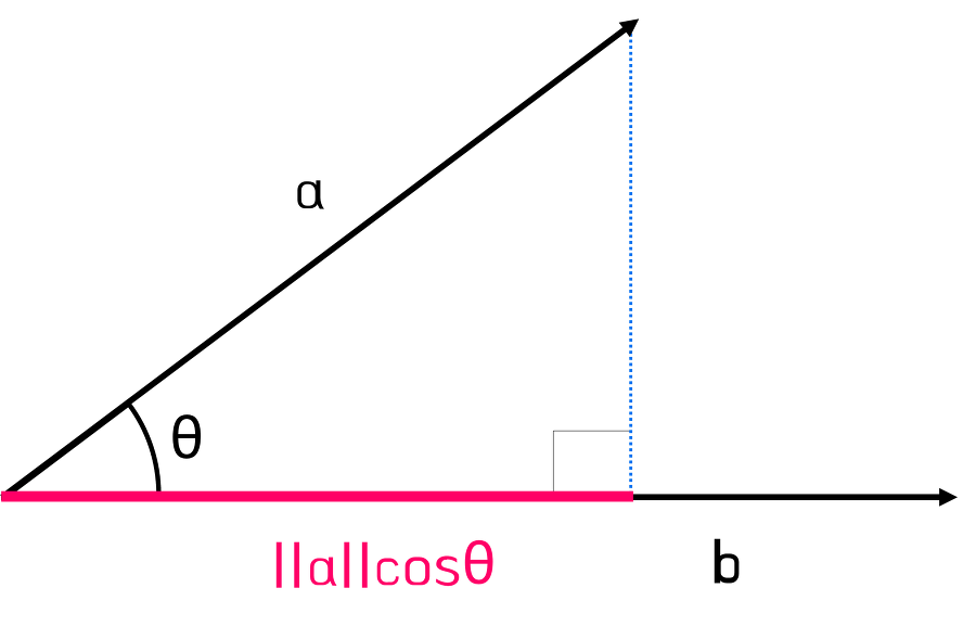 둘째, 어떤 벡터 a에서 수직으로 내린 길이(투영 길이)를 구할 때 내적을 사용한다.