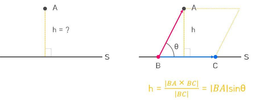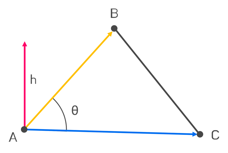 BA 와 BC 벡터를 만들어, 평행사변형의 높이를 구하는 방법을 응용해