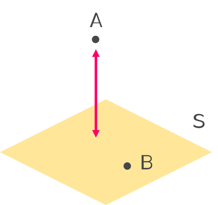 (B는 평면 위의 점, d는 점 A와 평면 S 간의 최단 거리)