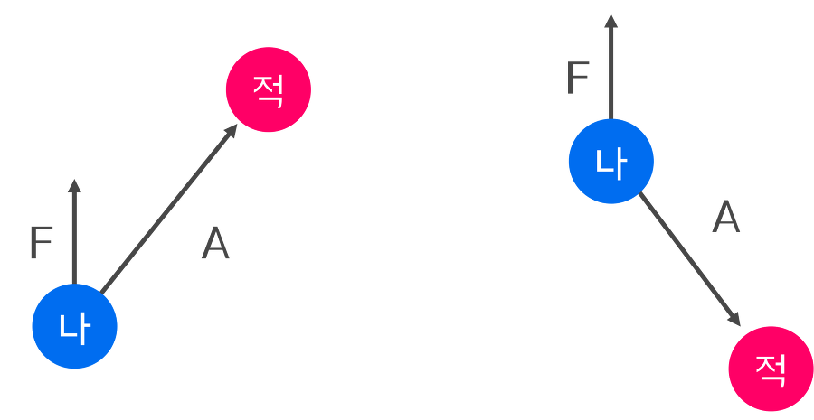 셋째, ‘나’의 방향벡터가 있을 때 적이 주인공의 앞에 있는지 뒤에 있는지 판단할 때 사용된다.