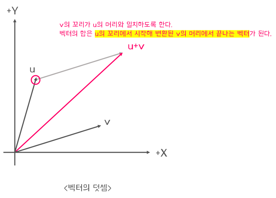 이때, 더하고자 하는 벡터는 반드시 동일한 차원을 가져야 한다.