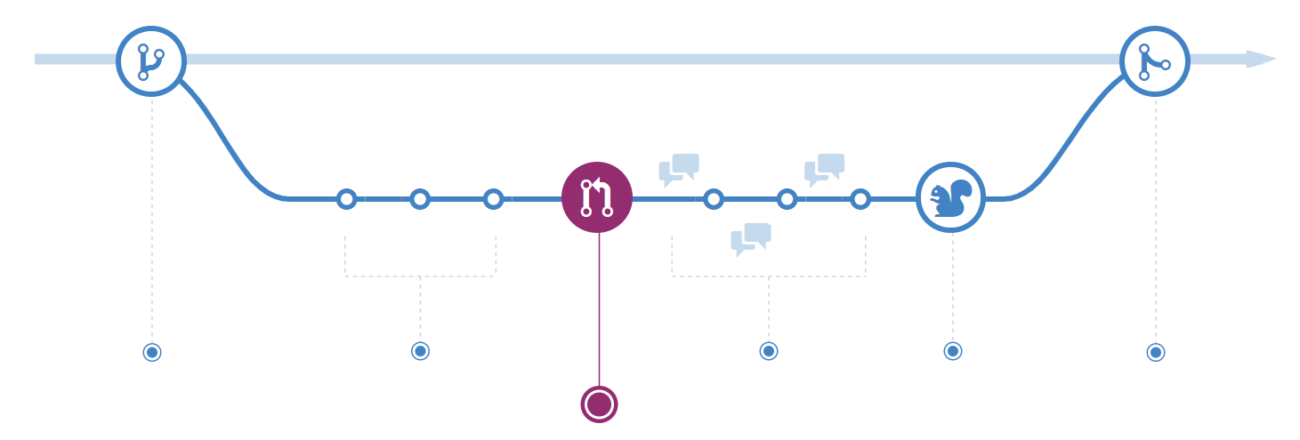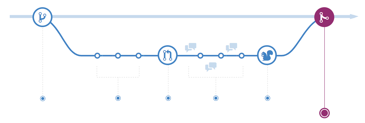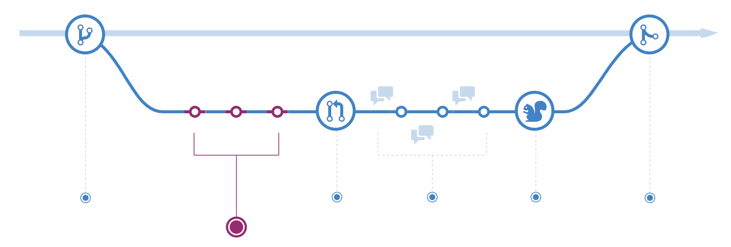 Git-flow가 Github에서 사용하기에는 복잡하다고 나온 브랜칭 전략입니다, 흐름이 단순한 만큼 role도 단순합니다. master 브랜치에 대한 role만 정확하다면 나머지 브랜치들에 대해서는 관여하지 않습니다. 즉, hotfix 브랜치나 feature 브랜치를 구분하지 않습니다. 다만 우선순위가 다를 뿐입니다. pull request 기능을 사용하도록 권장합니다.