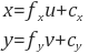 역으로, 이미지 상의 픽셀 (x, y)에 대응하는 정규좌표는 다음과 같이 계산됩니다.