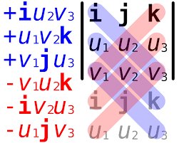 A x B = V(u1, u2, u3) x V(v1, v2, v3) = C ((u2 * v3) - (v1 * u2), (v1 * u3) - (u1 * v3), (u1 * v2) - (v1 & u2)) 가 됩니다.