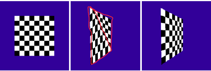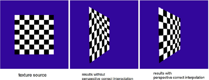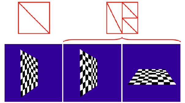 -> 원근 변환은 삼각형 모양을 비선형적으로 변경하여 다른 가중치 발생