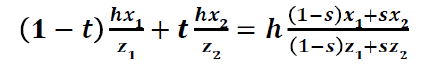 -> 삼각형처럼 2개의 값을 이용하고, weight를 이용(사이의 점 표현)