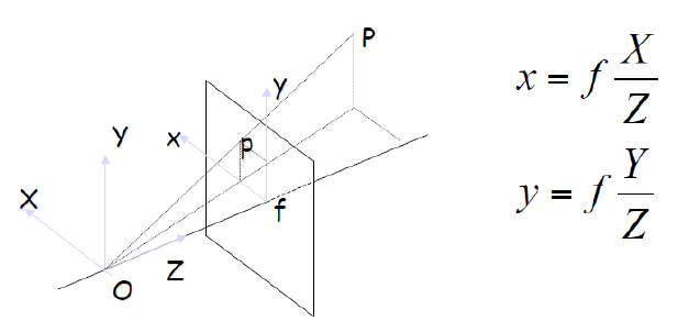 -> Camera to Film(3D-to-2D projection)[p = M_int x P_c]